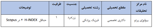 به اطلاع می رساند، معاونت تحقیقات و فناوری دانشگاه علوم پزشکی ایران، در راستای تامین نیروی انسانی مراکز تحقیقاتی دانشگاه، از بین دانش آموختگان رشته فیزیک پزشکی، در قالب هیات علمی پژوهشی دعوت به همکاری می نماید.