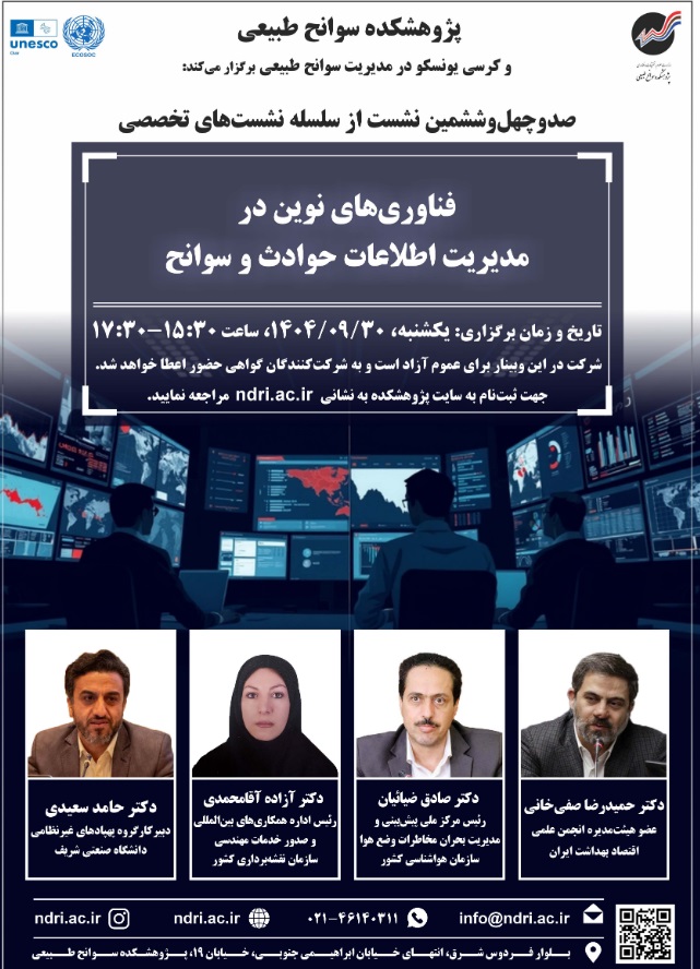 نشست فن آوری نوین در مدیریت اطلاعات حوادث وسوانح ۳۰ آذر ۱۴۰۴ | ۱۲:۰۴ کد : ۵۷۱۴۹ اطلاعیه ارسال به دیگران نام شما ایمیل شما ایمیل دریافتکننده ارسال انصراف تعداد بازدید:۳۰۷ دعوتنامه نشست فن آوری نوین در مدیریت اطلاعات حوادث وسوانح