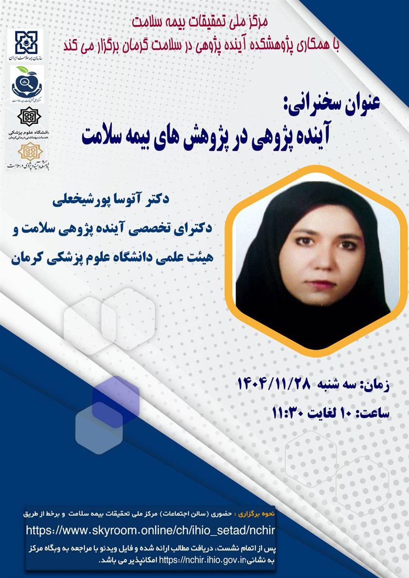 نشست علمی - تخصصی آینده پژوهی در پژوهش های بیمه سلامت ۲۶ بهمن ۱۴۰۴ | ۱۲:۱۹ کد : ۵۸۰۱۲ اطلاعیه ارسال به دیگران نام شما ایمیل شما ایمیل دریافتکننده ارسال انصراف تعداد بازدید:۲۶۶ نشست علمی - تخصصی آینده پژوهی در پژوهش های بیمه سلامت